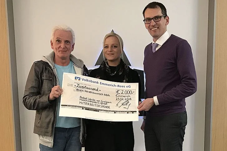 It has become a matter truly dear to the hearts of the Probat employees to collect donations for a charitable purpose once a year. Different local institutions and charitable associations were able to receive financial support from the Probat staff in the past. This year, the amount of 2000 euros which was gathered through an internal tombola will be donated to the hospice association Herzenswunsch Niederrhein, supporting the entirely voluntary work of the association.